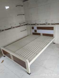 Giường sắt hộp kiểu mới 40×80 ốp gỗ 1m6x2m GT 17