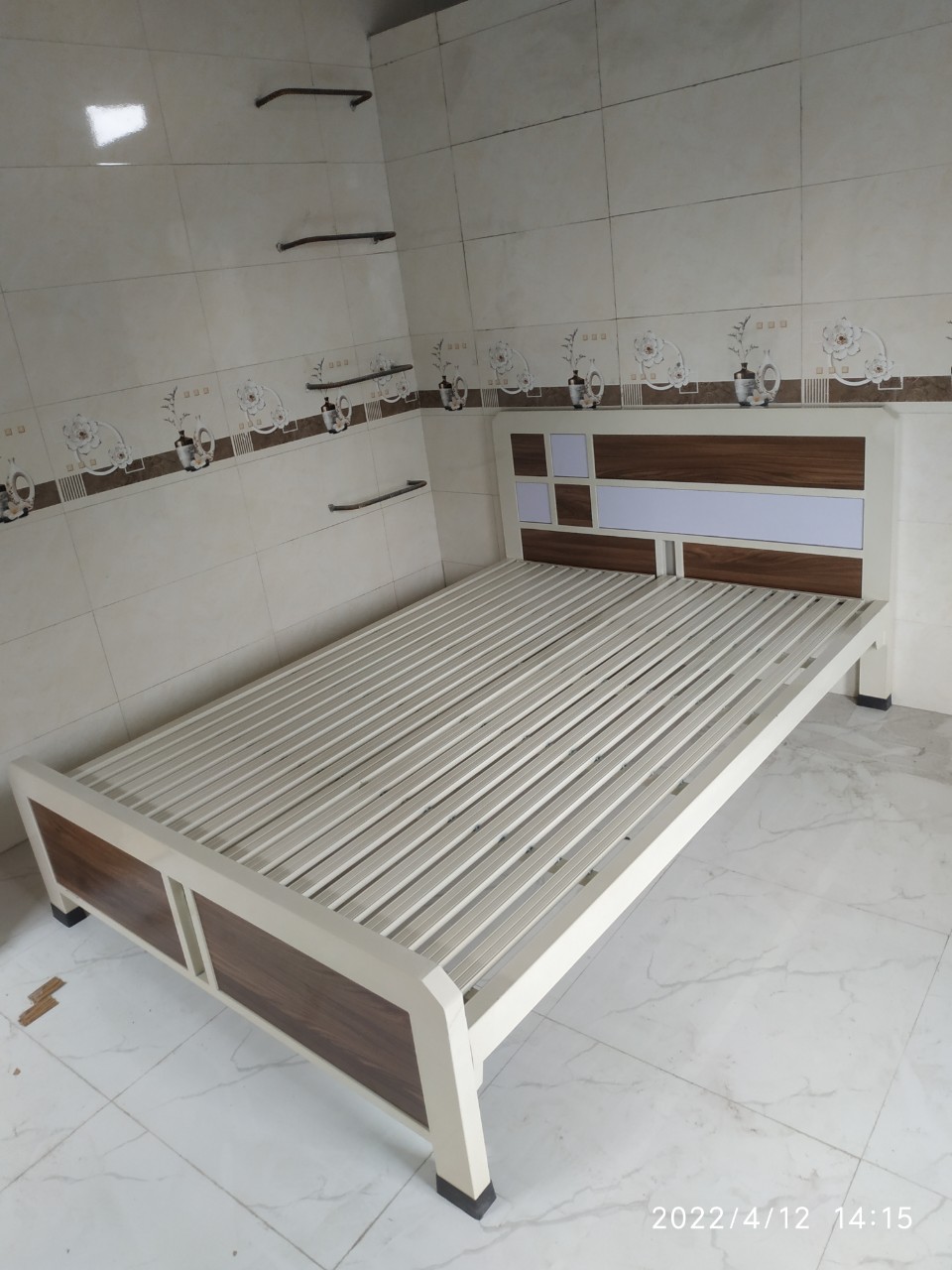 Hình ảnh Giường sắt hộp kiểu mới 40×80 ốp gỗ 1m6x2m GT 17