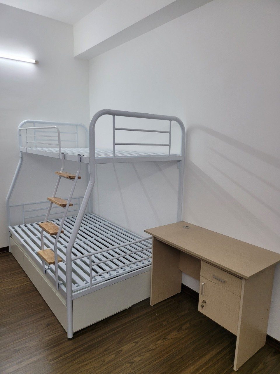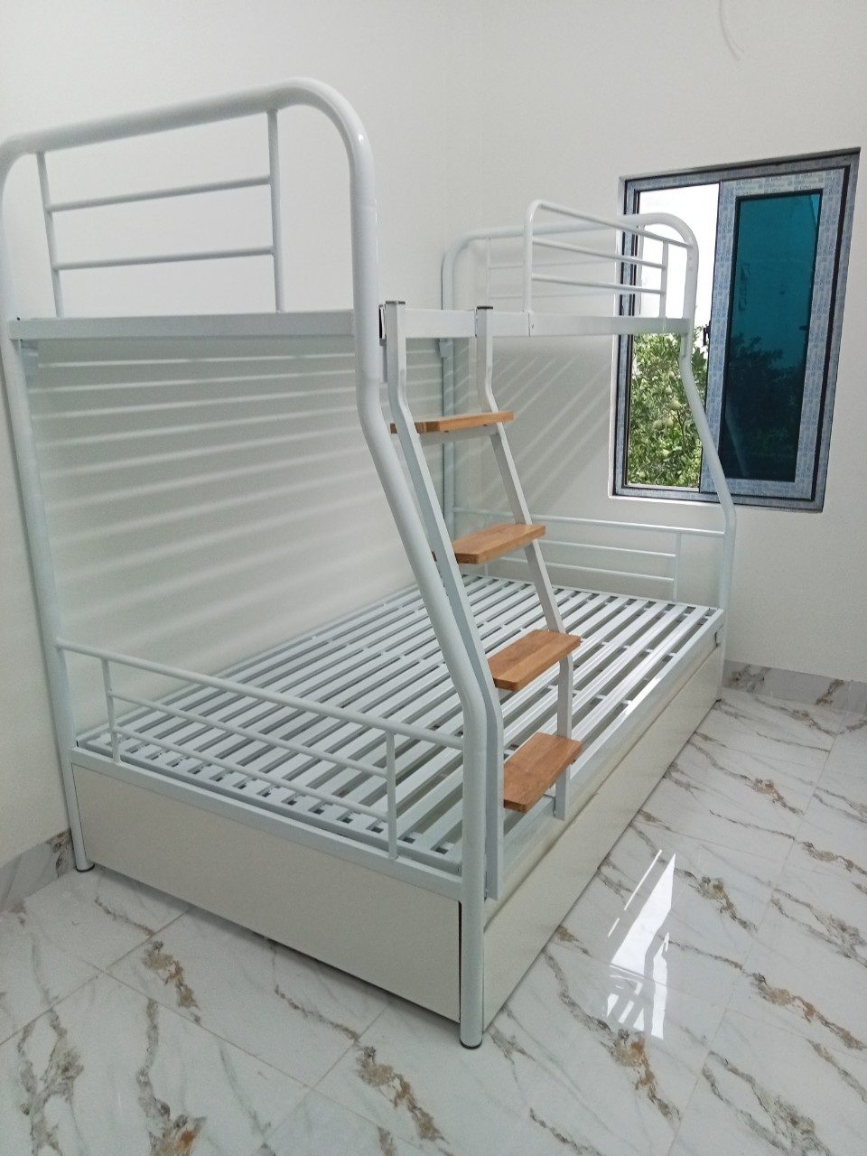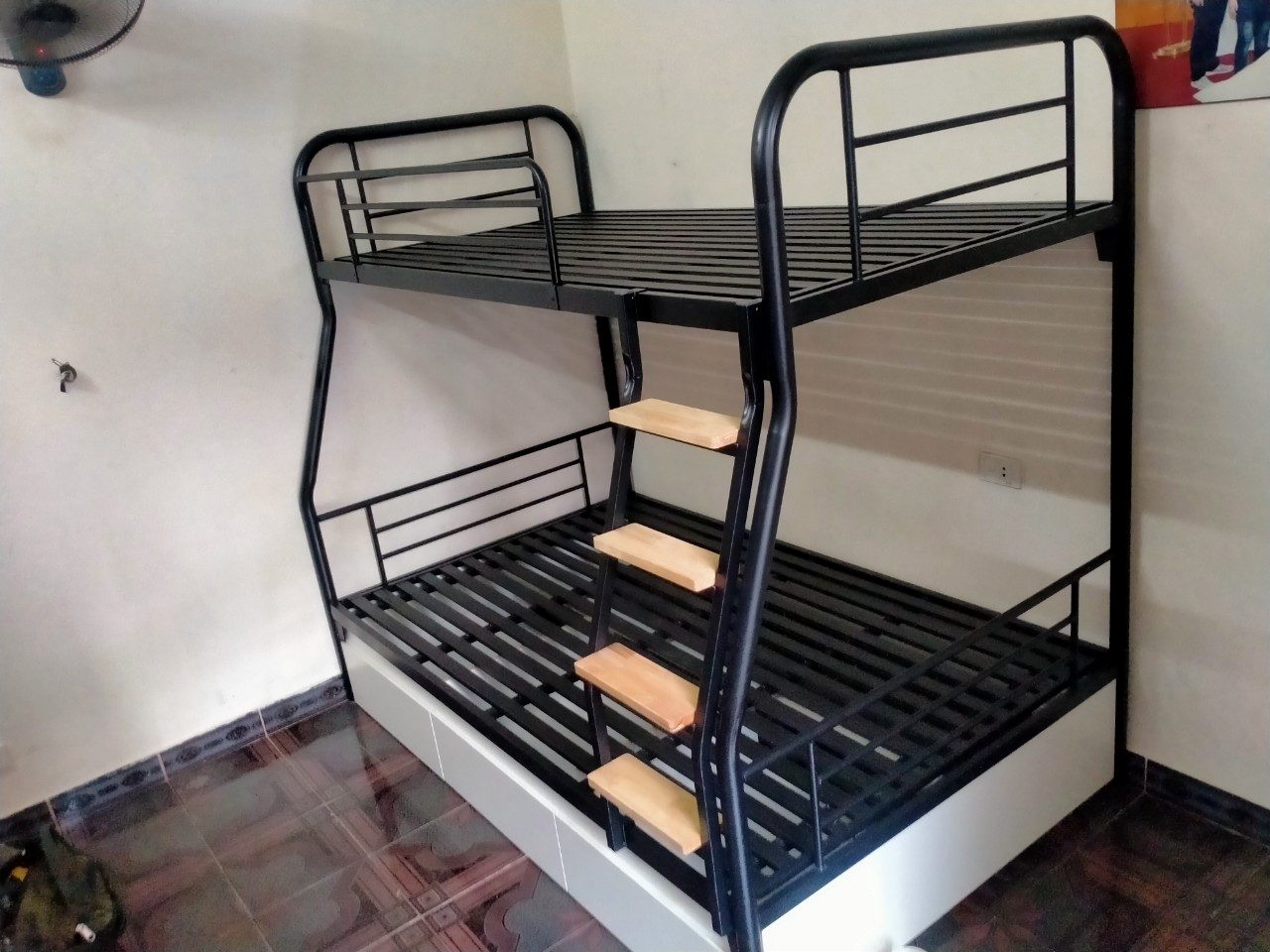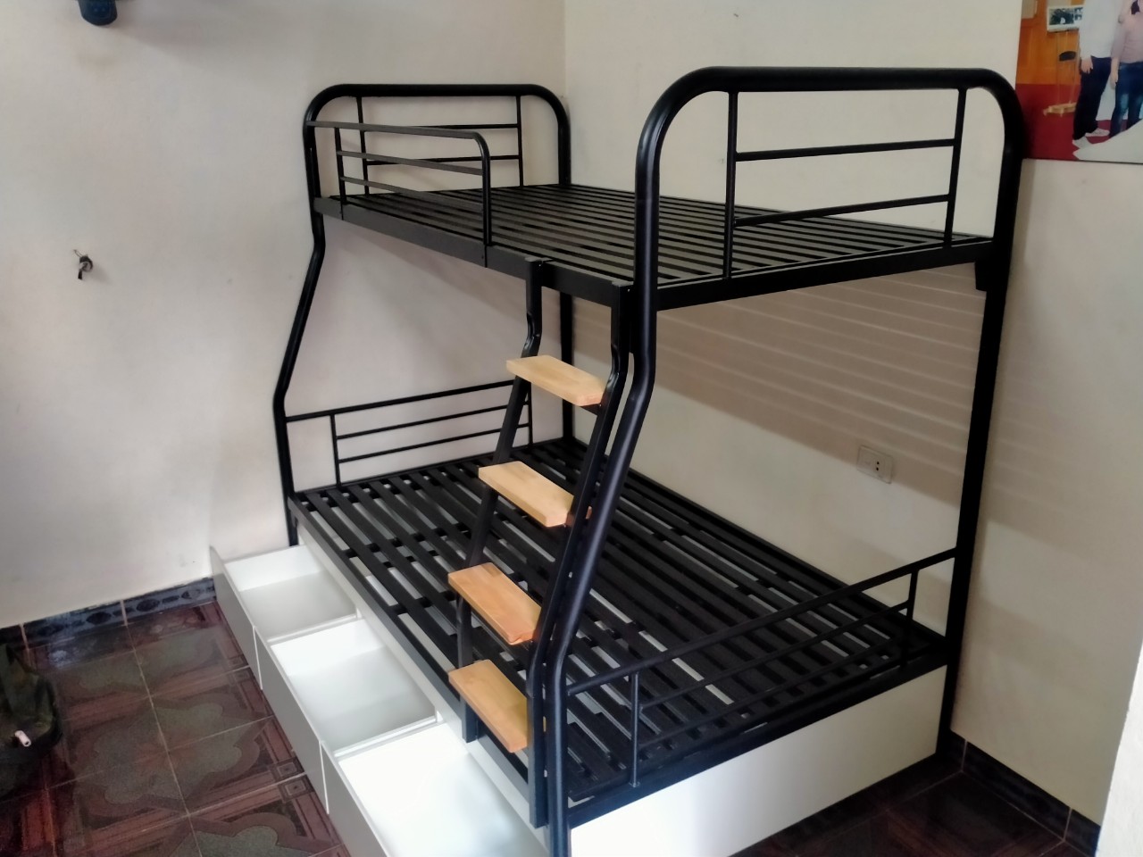 Giường tầng khung ống tròn có ngăn kéo gỗ rộng 1m2/1m GT 60