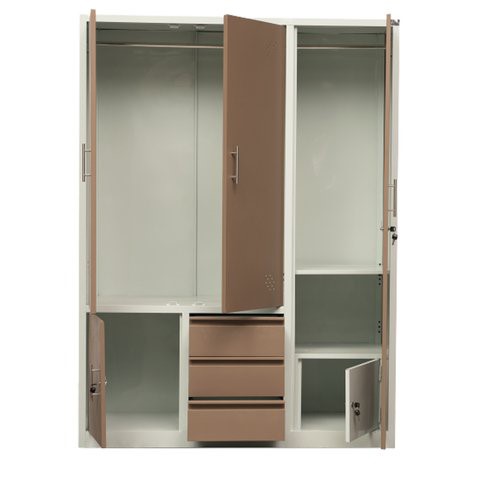 Tủ Sắt Đựng Quần Áo 3 Buồng Ngăn Kéo màu Cafe được rất nhiều gia đình sử dụng bởi độ bền cao và đa dạng mẫu mã nên đảo bảo chất lượng. Ưu điểm của sản phẩm này là chắc chắn, chống ẩm mốc và bảo vệ quần áo được tốt hơn.